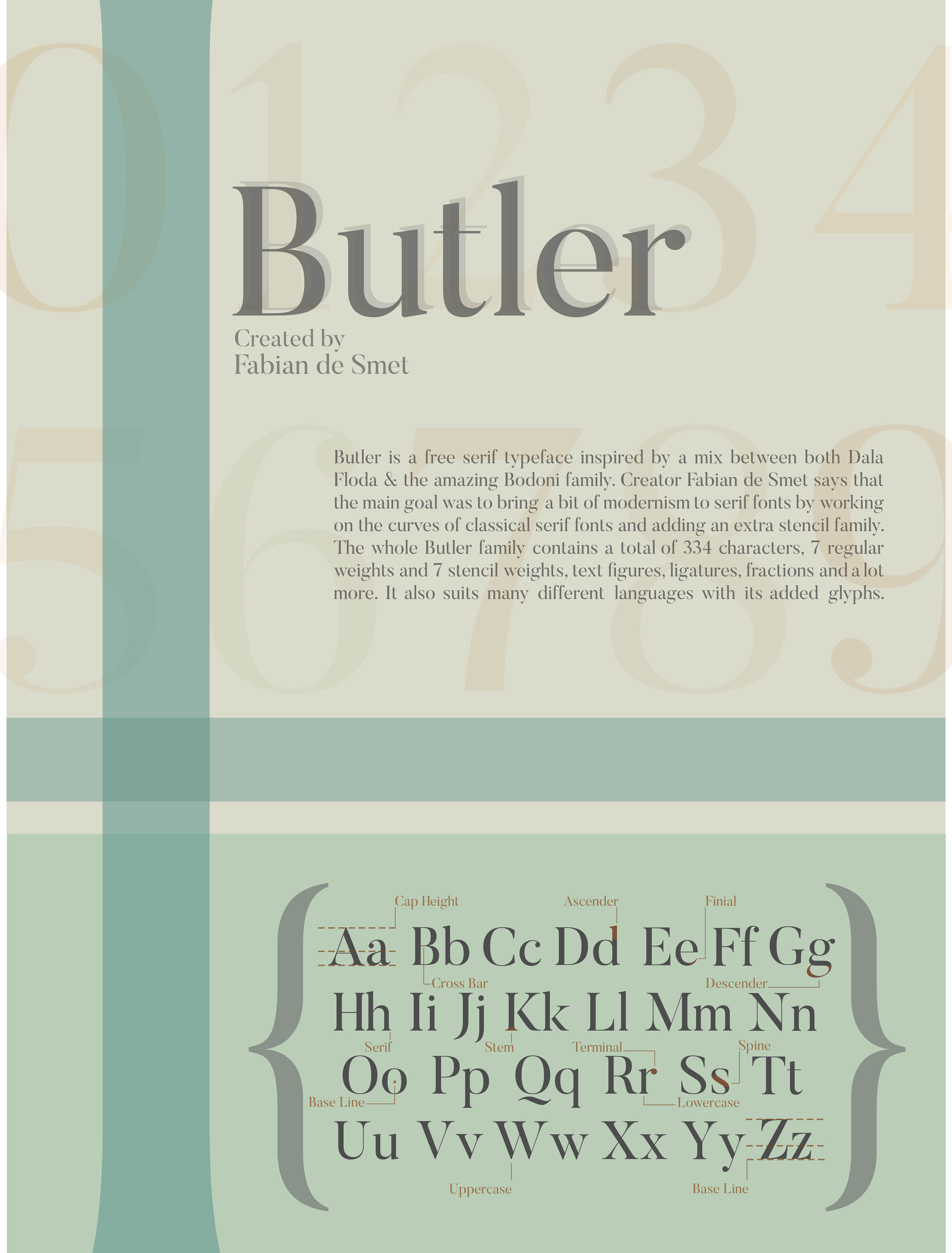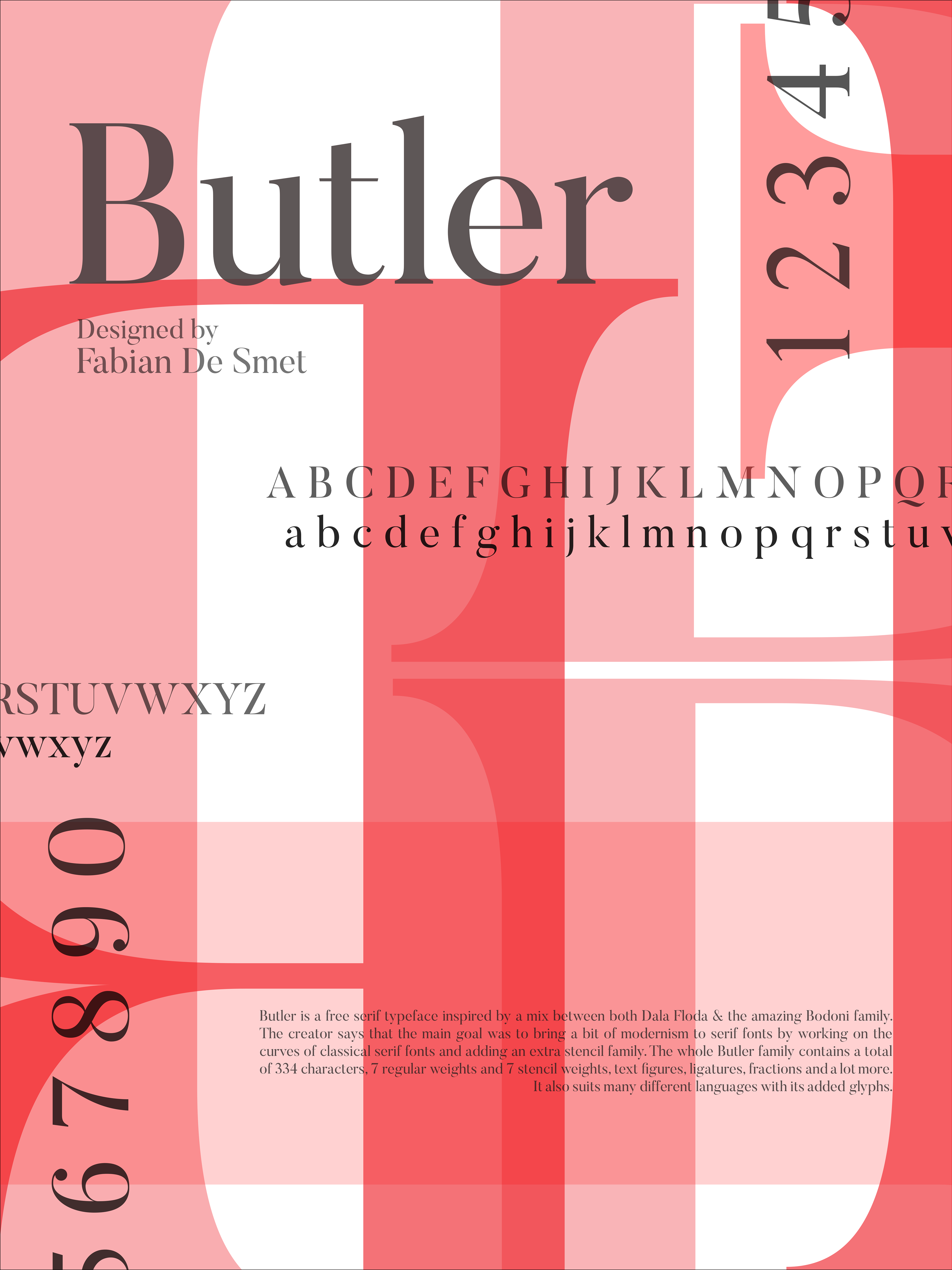 Type posters composed entirely from the shapes and forms of the Butler typeface.